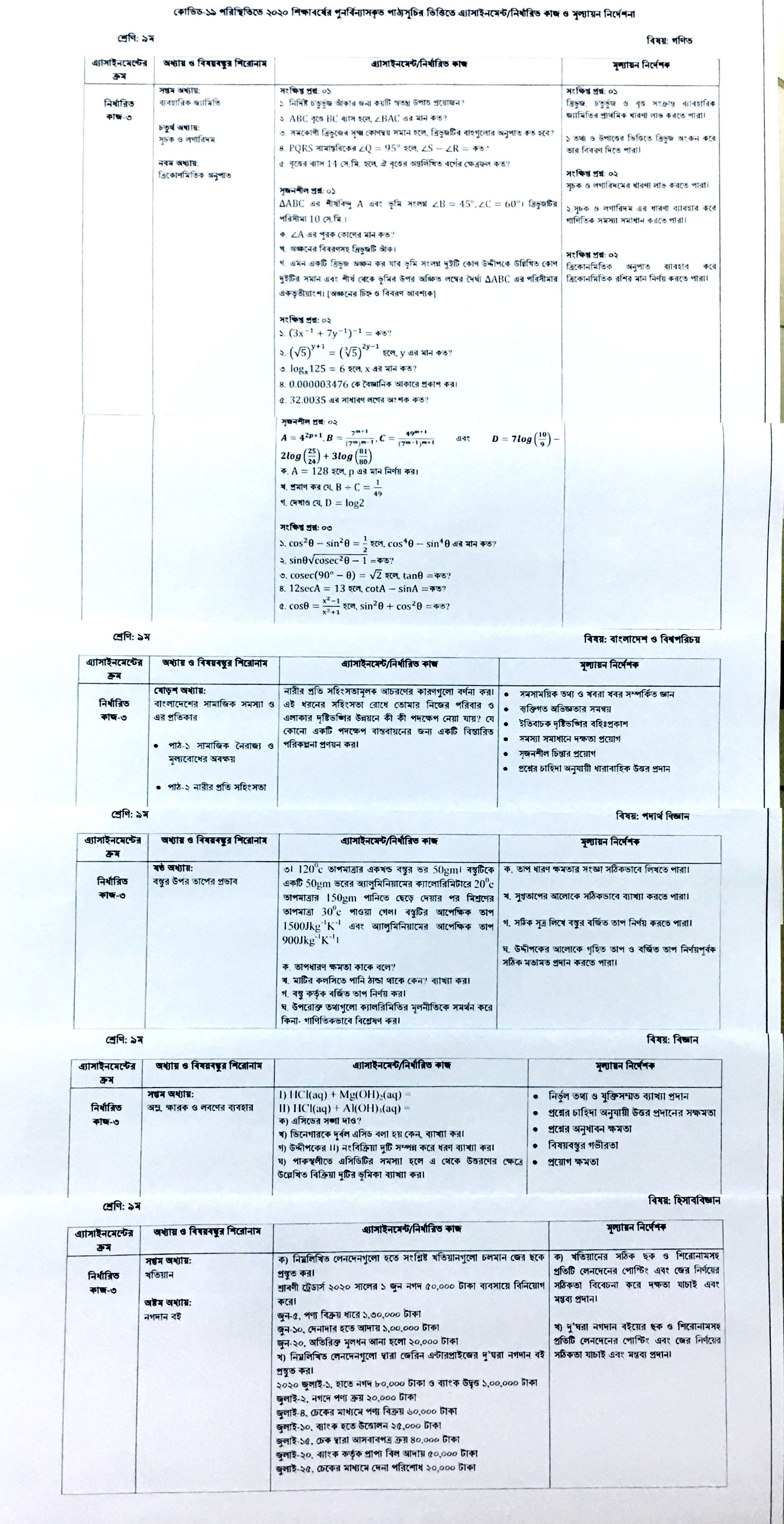 Notice Head : পুনর্বিন্যাসকৃত পাঠ্যসূচির ষষ্ঠ সপ্তাহের ৯ম শ্রেণির এ্যাসাইনমেন্ট।